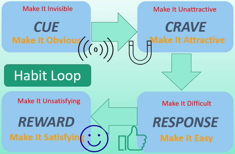 Four laws of behaviour change, mentioned in the book, form a habit loop.
