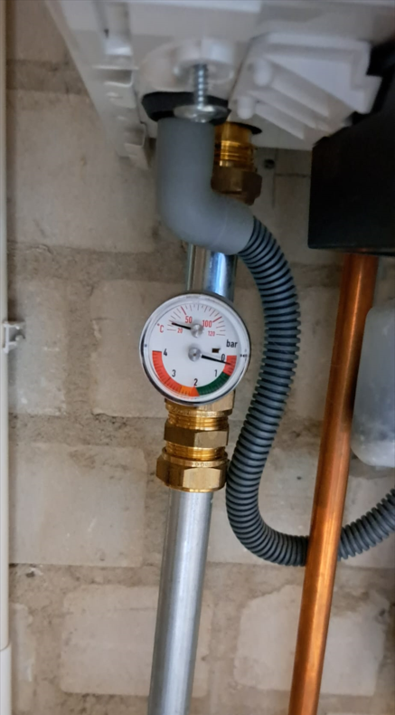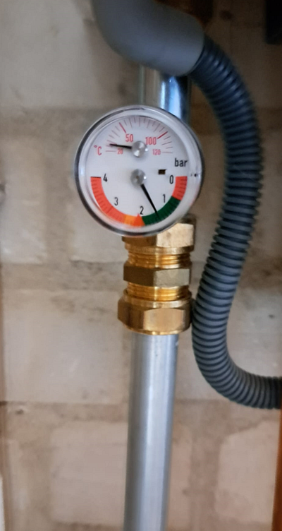 Loose water inlets and let the pressure increase & move the pointer to green zone. And then close lossen the water inlet. Check the radiators are heating or not. Radiators started heating in my house because pressure was low.