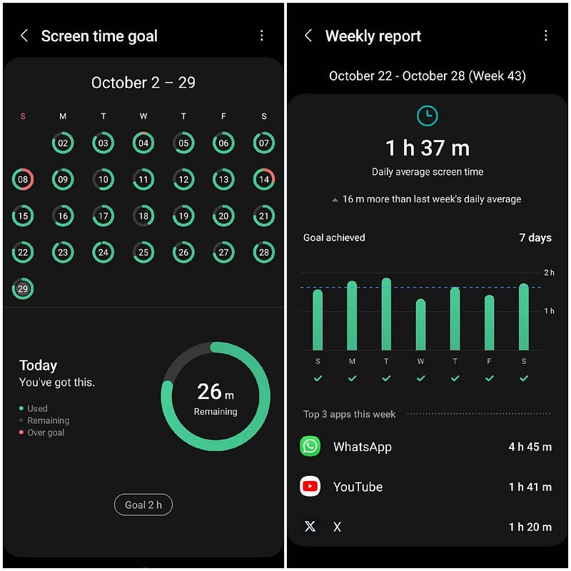 2. If productive apps like learning language apps (e.g. Duolingo), content creation apps, fitness apps etc. are already listed in top five of weekly report, then it is a good sign as we are investing in ourselves.