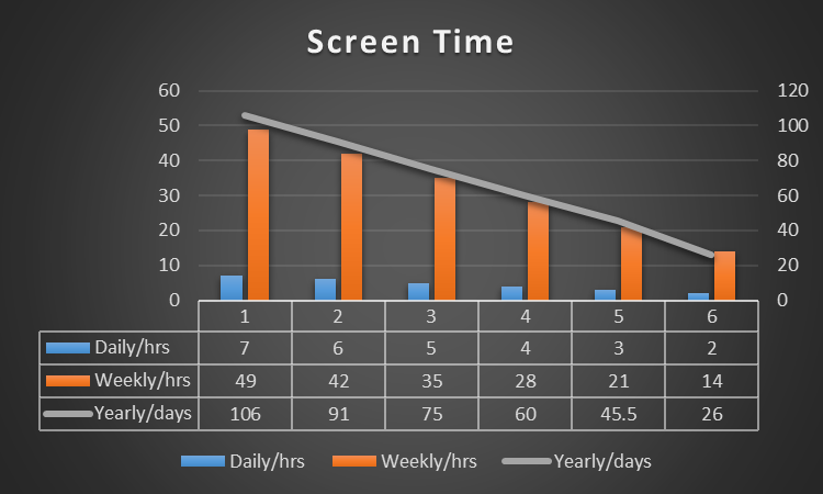 This is the most important section as it gives the profit and loss statement. As per the above screenshot dated November 2022, my screen time was around ~4 hours/day, 28 hours/week (~1+ day) and ~52 days/year. So I spent almost 60 days per year (i.e. Column 4 in below picture) in screen time. This is kind of sunk cost that I paid for my screen timing. Can you comment on the price you paid for your screen timing?