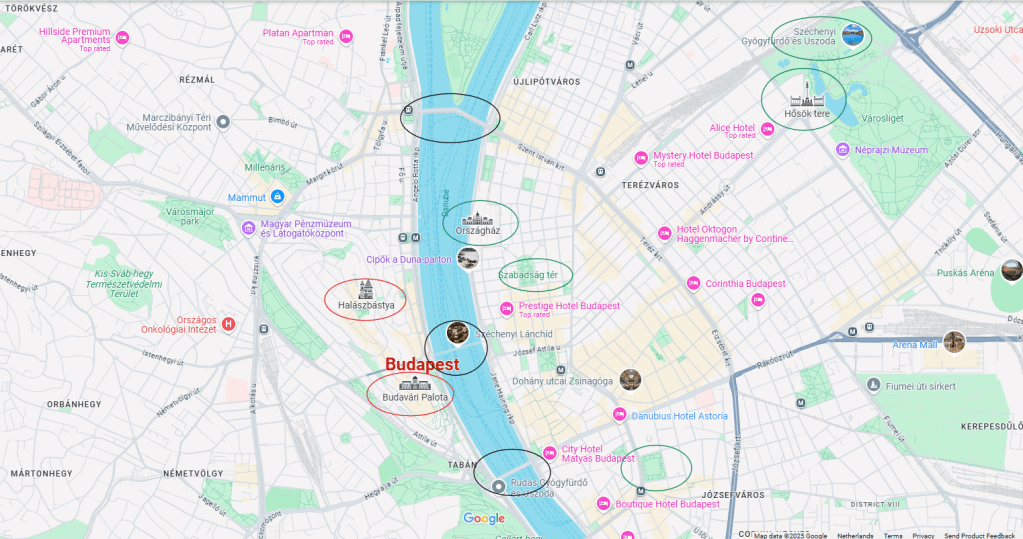The Danube River is separating “Buda” and “Pest”. You can find many boat trip options around that place. Some Hop-Off Hop-On bus tickets include boat trips in specific time slots, but there is a long queue for this category. Another option is to directly book a boat trip online, which is less crowded. Note: Choose the (late) evening time slot on summer days because then you can explore the lighting effect of important buildings around the river on the trip.